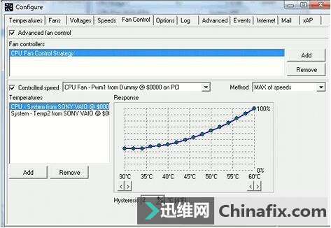 或者進入“Configure”內,微調風扇轉數對應的內部溫度,使電腦在溫控和噪音之間,有個合適的平衡點。如圖所示: