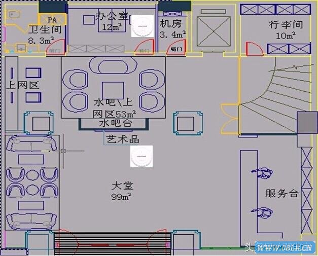 圖3、白色物表示2樓無線AP安裝點