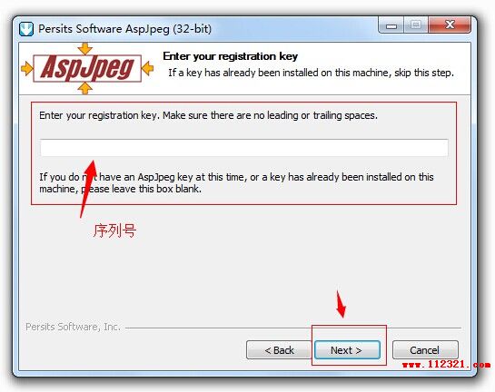 3. 輸入序列號注冊碼,AspJpeg需要注冊,不然就有使用時間限制,如果有注冊碼的話在此處輸入注冊碼,否則留空。