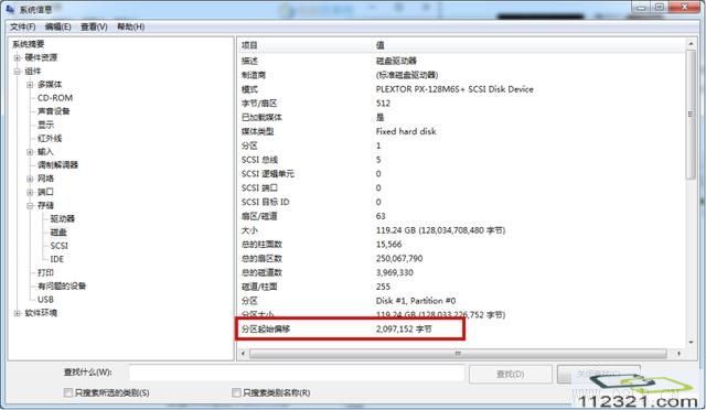 在打開系統信息窗口后,然后依次在左側點擊打開「組件」-「存儲」-「磁盤」,查看“分區起始偏移數值”。