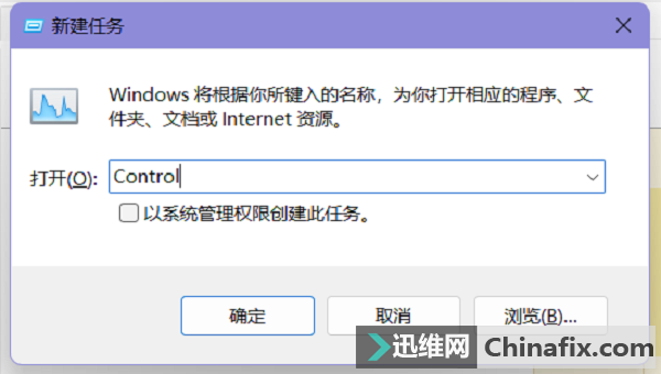 3、在新建任務窗口,輸入欄里輸入“Control”接著按下回車鍵或者點擊下方【確定】。