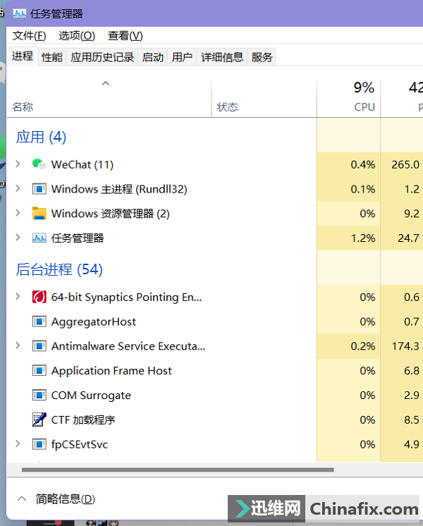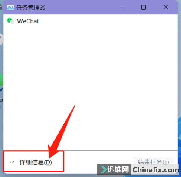 2、單擊任務管理器中的【詳細信息】選項切換到可以查看詳細列表。