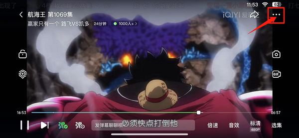 4、開啟畫中畫以后可以打開你要看的視頻app,這里以愛奇藝為例,然后播放視頻,點擊視頻右上角三個小點展開全部選項。