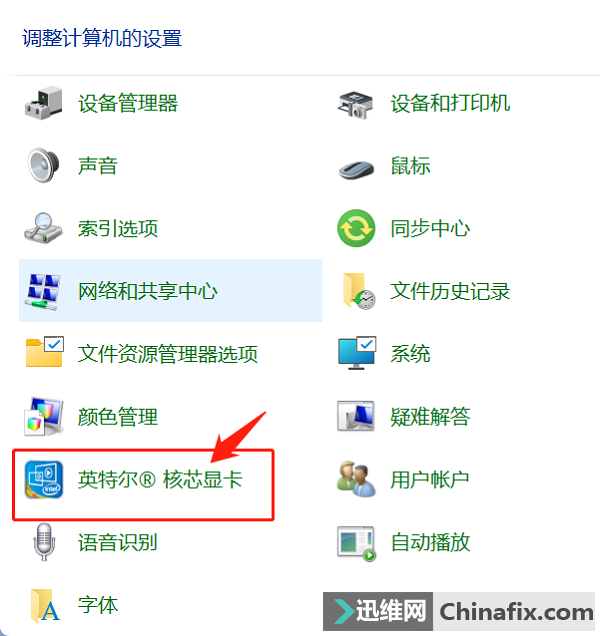 2、來到控制面板頁面,確保是大圖標的狀態(右上角可以切換),我們找到打開【英特爾核芯顯卡】選項。