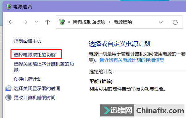 3、來到電源選項頁面后,點擊在側欄的【選擇電源按鈕的功能】 ;