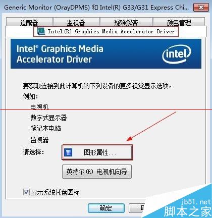 9、彈出窗口中點擊你的顯卡圖像控制,然后打開這里的圖形屬性。后面的操作就和上面的修改屏幕亮度的方法是一樣的!