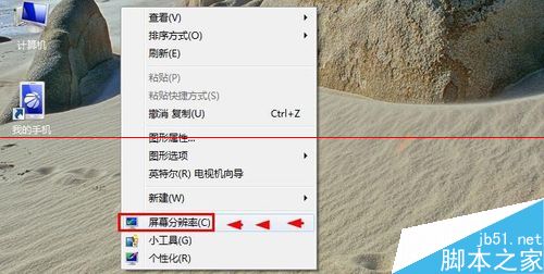7、當然我們也可以在WIN7電腦桌面上單擊鼠標右鍵,然后選擇屏幕分辨率!