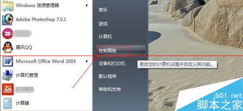 3、當然我們在系統(tǒng)中也可以對亮度進行調(diào)整,現(xiàn)在用WIN7朋友很多,這里小編就用WIN7系統(tǒng)來介紹下對亮度的調(diào)整方法,當然其它操作系統(tǒng)的朋友也可以參考小編經(jīng)驗進行學習了解,首先打開電腦控制面板!