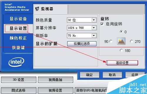 5、出現(xiàn)的窗口中點擊顯示設置,然后點擊右邊的高級設置打開!