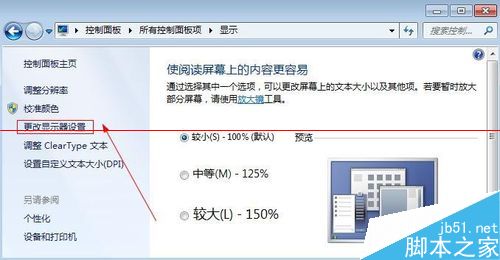 11、顯示對話框中在左側(cè)找到更改顯示器設置,然后點擊更改顯示器設置!