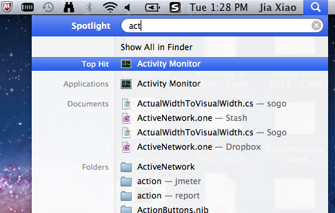 1. 在Spotlight中搜索 activity, 可以快速啟動(dòng)Activity monitor