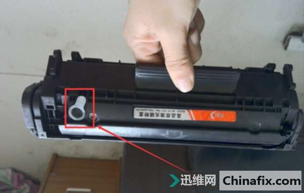 3、取出碳粉盒以后、先用小刀打開這個蓋子、把殘留的費(fèi)碳粉清理出去。