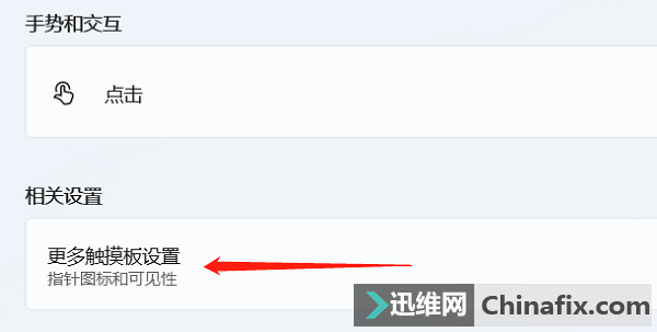 4、展開后,在相關設置下方選擇“更多觸摸板設置”。
