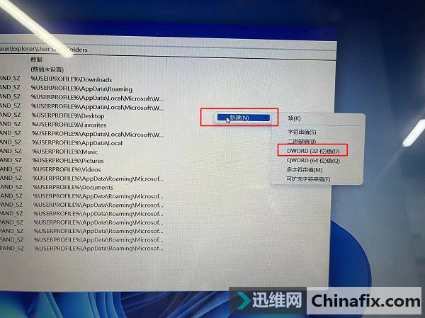 4、現在右鍵單擊右側窗格的空白區域,然后選擇新建 》 DWORD(32 位)值。