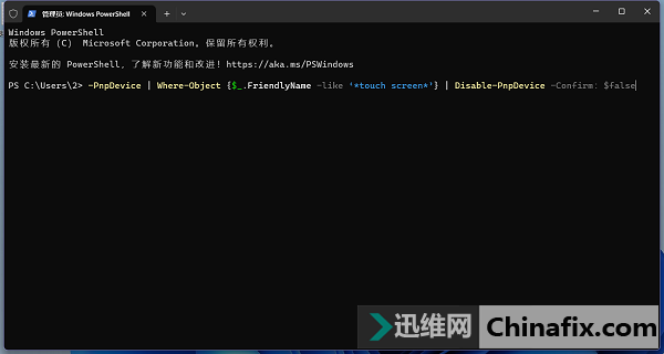 4、要再次啟用觸摸屏,請在 Windows PowerShell 上復制并粘貼以下命令,然后按 Enter。