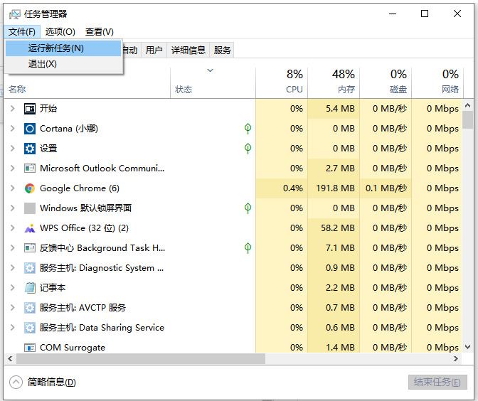 2、點擊左上角的“文件”,選擇“運行新任務”。