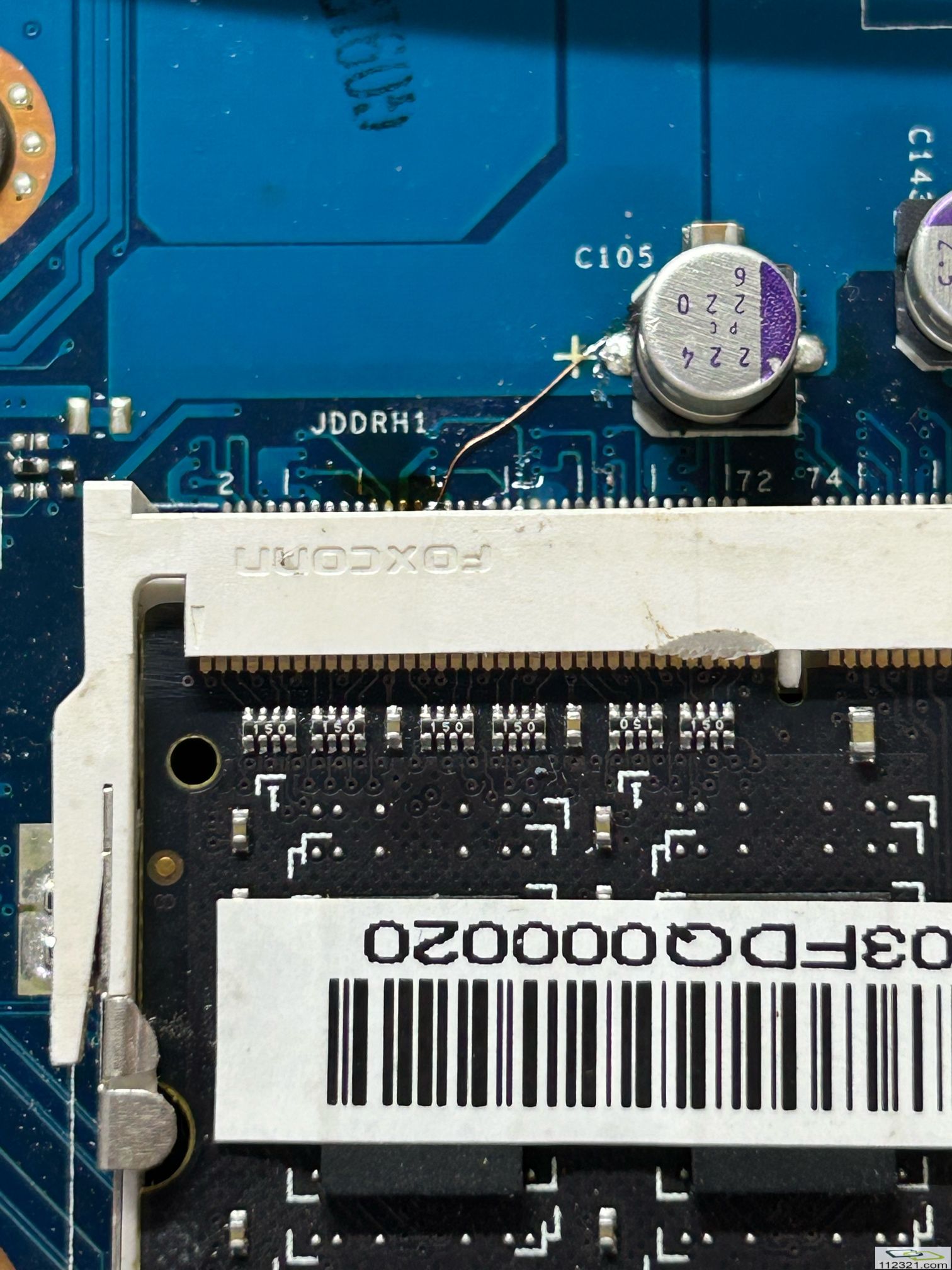 聯想c540一體機不開機,不是論壇的通病 接維修電源電流跑到1.9a定住,以為是撿錢活,拆機擦內存,故障依舊 不插內存開機報警,拆主板測量內存槽幾個測試點,測量到30腳沒有電壓,圖紙上是sm dramrst 客戶著急要,直接電容1.8v飛線,完美亮機