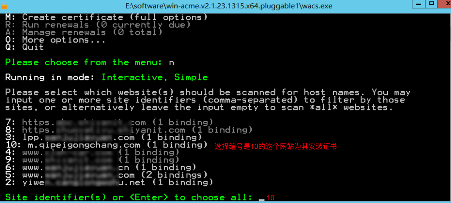 我們輸入:N,創(chuàng)建默認(rèn)配置的證書(shū)。選擇輸入編號(hào)為10的,為其創(chuàng)建證書(shū)。