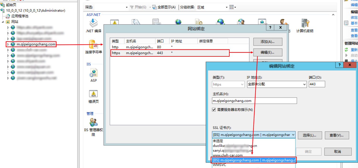 至此我們已經(jīng)為一個(gè)域名配置完成了一個(gè)SSL證書(shū),我們看下IIS下這個(gè)域名已經(jīng)自動(dòng)綁定并選擇了證書(shū)(見(jiàn)下圖)