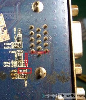 看來顯示色差故障就是它了,在料板上找了個小電感換了,把