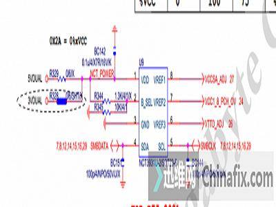 開機有時進BIOS死機,有時開機剛出LOGO就死機或者白屏然后十幾秒左右掉電,然后從最基本的供電查起,內存,VCC1_05PCH正常,當量到VCC1_8_PCH這個橋供電發現問題,剛開機1.85V慢慢上升,等電腦死機后變為2.2V左右, 這個電壓由U1這個運算放大器加MOS管降壓得到的,測運算3腳基準電壓1.85V正常,2腳負端也是1.85V,但是測Q20這個MOS管S極還是2.2V不正常,經查圖紙看到還連了一個超頻芯片, 測U9這個芯片7腳電壓2.2V不正常,論壇有前輩說過這個芯片可以直接拆掉,于是我用風槍把這個芯片拆掉,上電再測VCC1_8_PCH電壓穩定在1.85V, 裝系統測試一個小時沒發現死機 掉電,此機修復。